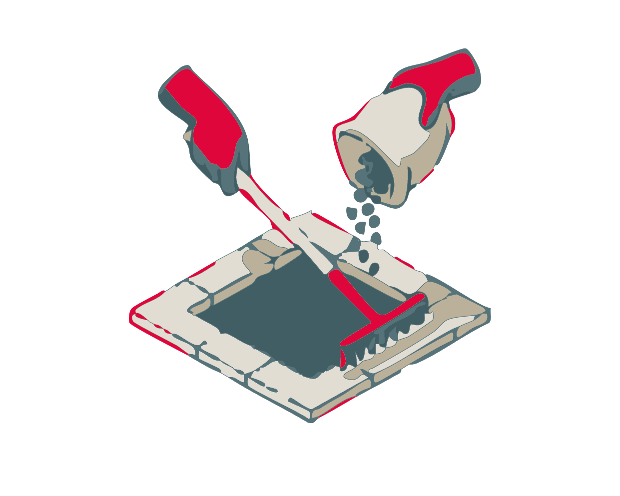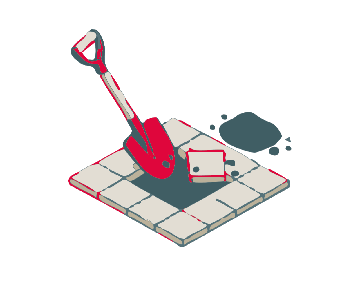 Flip een tegel met een schop of schroevendraaier, zodat er ruimte komt voor de planten mat.
